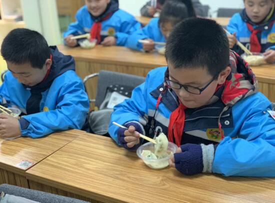 在南宋女詞人朱淑真的筆下,《冬至》一詩(shī)向我們徐徐道來(lái):在那遙遠(yuǎn)的古代,皇帝會(huì)在冬至日祭天,祈求天下安泰、萬(wàn)物豐收。故而被稱(chēng)為“冬節(jié)”、“長(zhǎng)至節(jié)”、“亞歲”、“大如年”的冬至,也包裹著人們對(duì)家庭團(tuán)圓的期盼與豐年的喜愿。這時(shí),周老師悄悄從教室后面進(jìn)來(lái),為孩子們送上一份熱氣騰騰的水餃。同學(xué)們邊吃邊聊,氛圍和諧,讓人忍不住用鏡頭記錄下這溫馨的一幕。