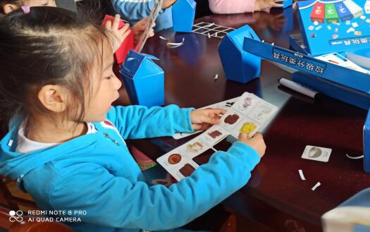 相信垃圾分類意識(shí)已經(jīng)在小朋友們的心里產(chǎn)生了小小萌芽。緊隨其后,由志愿者協(xié)助老師發(fā)放垃圾桶疊紙?zhí)讏D和生活垃圾卡片貼紙,小朋友們?cè)谥驹刚叩膸椭?,紛紛自己?dòng)手“建造”垃圾箱,不多時(shí)孩子們的垃圾箱已經(jīng)制作完畢,對(duì)于新學(xué)到的垃圾分類知識(shí),孩子們躍躍欲試,紛紛討論起各種垃圾的分類問題。最終,在志愿成員的提示及指導(dǎo)下,每個(gè)小朋友都交出了自己滿意的答卷,當(dāng)然,在制作完成后,小朋友們自動(dòng)把制作過(guò)程中產(chǎn)生的廢紙屑,塑料殼認(rèn)認(rèn)真真地按照垃圾分類標(biāo)準(zhǔn)丟到了指定的垃圾桶內(nèi)。通過(guò)這次活動(dòng),相信垃圾分類意識(shí)已經(jīng)深深扎根于孩子們的心中。