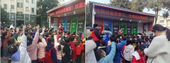 活動開始,志愿者首先介紹了垃圾分類的重要意義、分類原則和投放要求,并根據(jù)身后垃圾箱房紅、藍、灰、綠四個顏色,向孩子們詳細講解生活垃圾的投放方法;“礦泉水瓶應(yīng)該投放到哪個垃圾箱?”“香蕉皮應(yīng)該到哪兒去?”現(xiàn)場,志愿者還提問了一些常見垃圾的分類,進一步激發(fā)了孩子們的參與興趣。孩子們踴躍舉手,積極發(fā)言,在問答中鞏固垃圾分類知識。