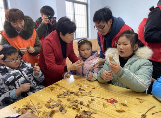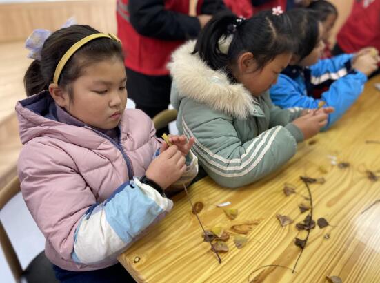 活動開始,志愿者老師首先給大家詳細(xì)介紹了本次活動所需要的材料,給孩子們師范制作過程,鼓勵大家開動腦筋,發(fā)揮想象力,大家躍躍欲試,有做成立體玫瑰花形狀的,有用樹葉粘貼成一幅畫的,簡單的樹葉變成了一幅幅美麗的手工作品,不僅鍛煉了孩子們的動手操作能力,而且還讓孩子們更加熱愛大自然,熱愛多彩的世界。