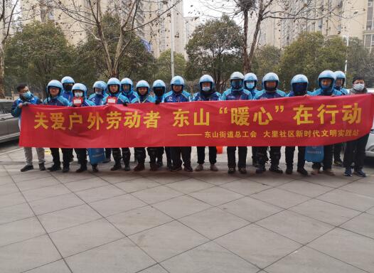 為提高服務(wù)職工精準(zhǔn)化水平,切實幫助戶外勞動者解決生產(chǎn)生活方面的實際困難,實現(xiàn)戶外為提高服務(wù)職工勞動者“體面勞動、舒心工作、全面發(fā)展”,2021年1月5日,江寧區(qū)東山街道總工會、大里社區(qū)新時代文明實踐站開展以“關(guān)愛戶外勞動者 東山‘暖心’在行動”為主題的活動,為外賣小哥、保潔、交警送溫暖。