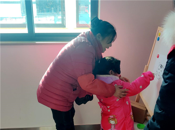 活動開始,志愿者首先為在場的親子家庭介紹今天的活動流程,孩子們認(rèn)真傾聽,一個個躍躍欲試。接著,志愿者引導(dǎo)大家進入“默契大考驗”環(huán)節(jié),小朋友們帶上眼罩,家長負(fù)責(zé)指揮孩子為小貓畫上鼻子。只見家長不時提醒孩子“往左邊一點!”“等一下歪了歪了!”,小朋友們小心地用手確定位置,努力給可愛的小貓畫上鼻子,現(xiàn)場一片歡聲笑語。