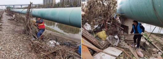 清理現(xiàn)場(chǎng),工作人員和志愿者頂著嚴(yán)寒,深入長(zhǎng)溝管道底下,本著不漏一處的原則,把冬季干枯的枝干、菜秧進(jìn)行打包運(yùn)走,把遺留下的塑料薄膜和化肥袋子清掃干凈。經(jīng)過(guò)一天的努力,十月長(zhǎng)溝邊又恢復(fù)了往日的整潔和美觀。