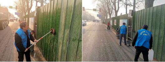 活動現(xiàn)場,志愿者們頂著寒風清洗沿線護欄。為提高工作效率,他們有的使用拖把、抹布等工具負責擦洗工作,有的來回奔跑負責干凈水源運送,經(jīng)過一整天的努力,原先“灰蒙蒙”的護欄已經(jīng)變得煥然一新。