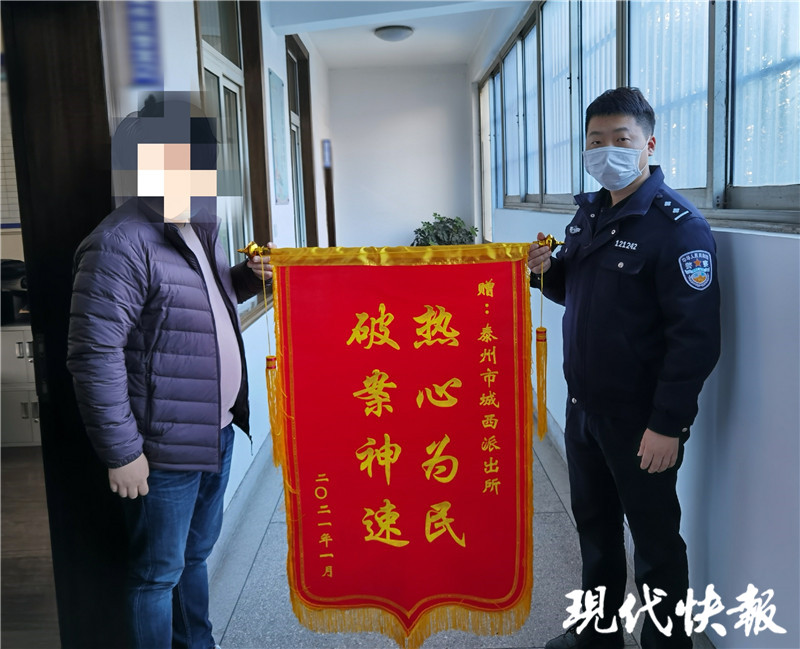 1月18日下午,民警將9.8萬(wàn)元如數(shù)退還到王先生手中,被騙錢財(cái)失而復(fù)得,王先生和家人十分感激,特意制作了一面錦旗送到派出所辦案民警手中。