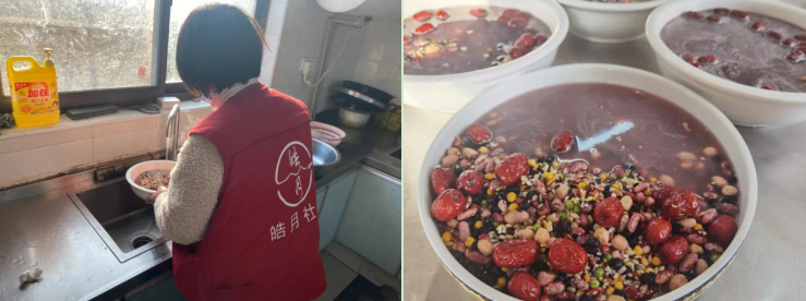 小米、大米、黑米,米米傳香;小豆、紅豆、綠豆,豆豆傳情……工作人員和志愿者從早上八點開始忙碌,經(jīng)過食材清洗、浸泡、熬制和攪拌等步驟,一大鍋香氣四溢的臘八粥就出爐了。隨后,志愿者們將臘八粥打包入盒,為外來務(wù)工人員及社區(qū)孤寡老人送去問候。