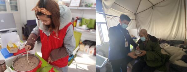 前一天,志愿者們將大米、大豆、紅棗、蓮子等洗凈、浸泡。一大早便開始忙著煮臘八粥,臘八粥的香味彌漫在空氣中。志愿者們帶著熱乎的臘八粥入戶老人家中。剛好是午飯的點(diǎn),五保戶王和生爺爺笑呵呵地說“中午我就不用燒飯了,謝謝你們!每到臘八節(jié),你們都會(huì)送臘八粥,這種關(guān)愛,我感到很幸福。”馬爺爺經(jīng)常一人在家,“平時(shí)自己的兒女只有過年才回來一次,這次能喝上你們親自熬的臘八粥真的很感動(dòng)。”他動(dòng)情地講道,轄區(qū)內(nèi)被慰問的老人們喝了熱騰騰的臘八粥都樂得合不攏嘴。