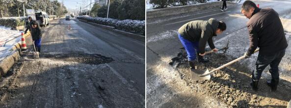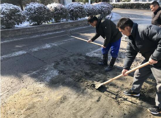 發(fā)現(xiàn)這個情況后,社區(qū)立即組織人員找來了幾袋水泥和黃沙客串起了“泥瓦匠”,對路面出現(xiàn)塌陷的路面全部挖開,重新填充修補,對破損道路進行了維修??吹缴鐓^(qū)志愿者們帶頭一起維修路面,許多附近的熱心居民也都紛紛加入到干活的隊伍中來。經(jīng)過了2個多小時的努力,破損坑洼的路面徹底抹平,路面平整干凈,得到居民的一致稱贊,錢大爺說到:“社區(qū)現(xiàn)在辦事效率真是高,那么快就為我們修好了這條路,真是太好了!”