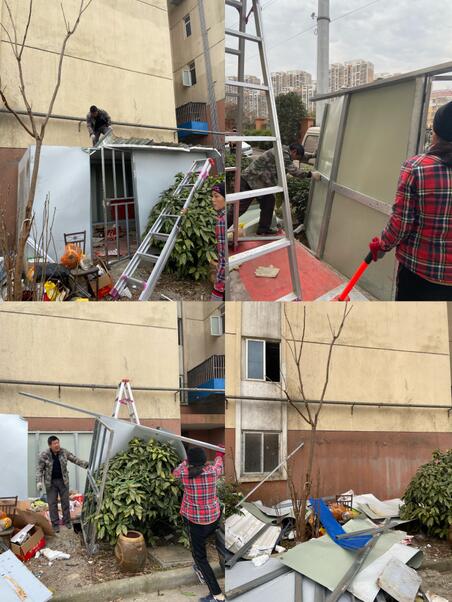 本著對(duì)違建“零容忍”、“不姑息”的態(tài)度,社區(qū)副書記陳書記帶領(lǐng)幾名工作人員上門入戶,與違建所涉住戶進(jìn)行溝通協(xié)調(diào),講明違建危害、相關(guān)政策和文明城市創(chuàng)建的意義,最終,違建戶同意由社區(qū)安排人員將違建拆除。