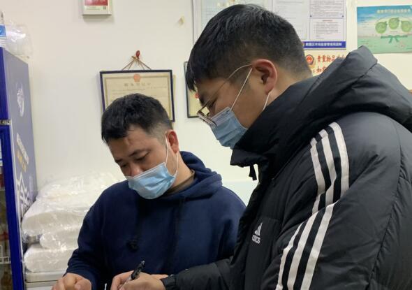 檢查中,工作人員重點(diǎn)檢查經(jīng)營(yíng)單位冷鏈?zhǔn)称匪髯C索票是否落實(shí),有無(wú)進(jìn)貨查驗(yàn)、來(lái)源登記,接觸人員是否按防疫要求進(jìn)行核酸檢測(cè)。同時(shí)對(duì)經(jīng)營(yíng)提出疫情防控相關(guān)要求,一是人員進(jìn)入要戴口罩、測(cè)體溫、核驗(yàn)健康碼、登記記錄;二是每日消殺、及時(shí)清理垃圾、保持環(huán)境整潔;三是備足防疫物資、設(shè)置一米線(xiàn)、餐飲店提供公勺公筷;四是制定應(yīng)急預(yù)案,加強(qiáng)員工教育培訓(xùn)。