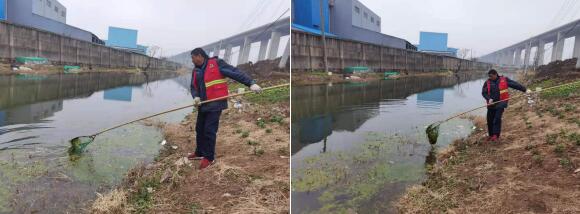 清理現(xiàn)場,河道管理員和志愿者來到堤壩和河邊,充分發(fā)揚不怕臟、不怕累的精神作風(fēng),使用長竹竿等工具將河面上的白色漂浮物撈起,并清理攔河網(wǎng)具、河岸堆放物和垃圾,恢復(fù)趙家圩長溝原有的“水清”“河暢”。