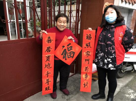 新年福到,好上加好。春節(jié)的腳步越來越近,人們已經(jīng)開始置備年貨,準備回家的行程。家里除了要打掃一新,過年的“小儀式”也必不可少。粘“福”字,貼春聯(lián)......門前總要添置些喜氣,寄托新年的美好愿景。雖然風還涼,但陽光剛剛好。由于疫情當前,志愿者挨家挨戶,介紹了當前疫情防控的主要措施和工作開展情況,并與他們親切交談,了解身體狀況和生活所需,向他們征求對殘疾人及養(yǎng)老工作的意見建議。送的是“福”字,傳遞的是心意,更是來自社區(qū)最真誠的祝愿。接過雞蛋和茶具,殘疾老人劉爺爺說:“這才有過年的氣氛,往年都是自己去外面買,希望每年社區(qū)都會有類似的活動,讓過年的氣氛更加濃郁一些。”