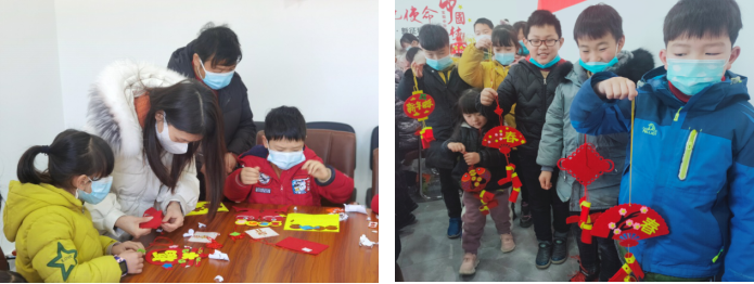 你卷炮筒我粘貼,孩子們忙的不亦樂乎,在志愿者和孩子們的默契配合下,制作出了一串串“逼真”的鞭炮。雖然有的孩子做得有點粗糙,但是看著自己的作品,每個孩子的臉上都洋溢著快樂。