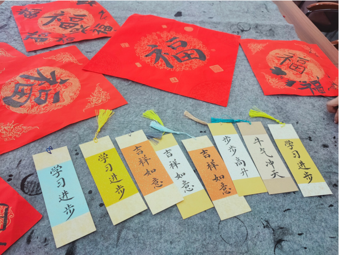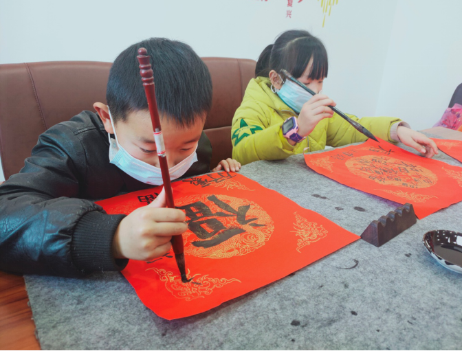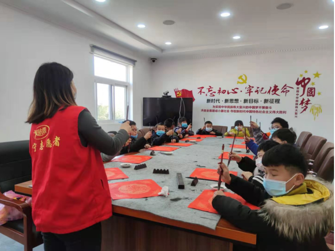 除了寫福字外,志愿者還組織孩子們在書簽上寫下新年祝福語送給自己。