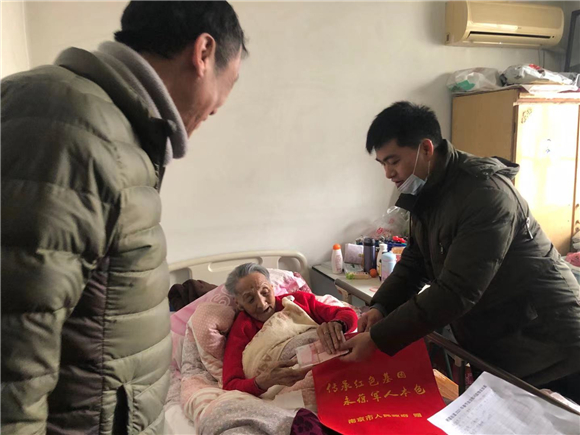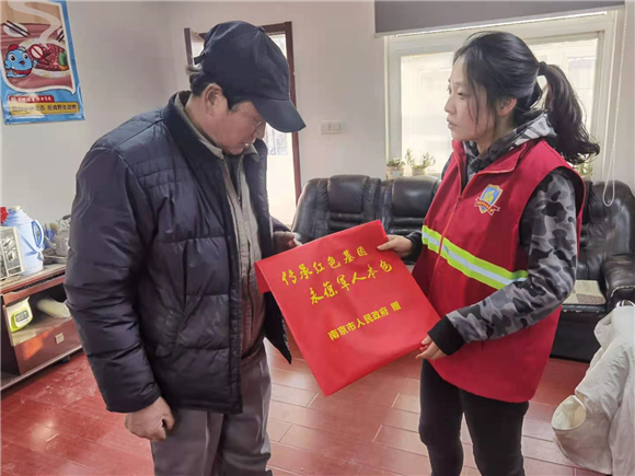 全科社工來到退役軍人劉道友及烈士子女周立華的家中,工作人員與他們展開親切的交談,悉心了解他們的身體、生活狀況,詢問其生活上是否有無法解決的困難,可以聯(lián)系社區(qū)代辦;并向他們介紹目前社區(qū)建立的“退役軍人服務(wù)站”,不僅能在其中重溫舊時(shí)的部隊(duì)記憶,還可以享受一站式服務(wù)帶來的便利。隨后,工作人員為他們送上春聯(lián)和慰問金,表達(dá)新春的祝福,祝愿他們來年生活順利,心想事成。劉道友和周立華對(duì)此感動(dòng)不已:“感謝黨和社區(qū)沒有忘記我們,還為我們帶來這么多的便利,實(shí)在太周到了。”