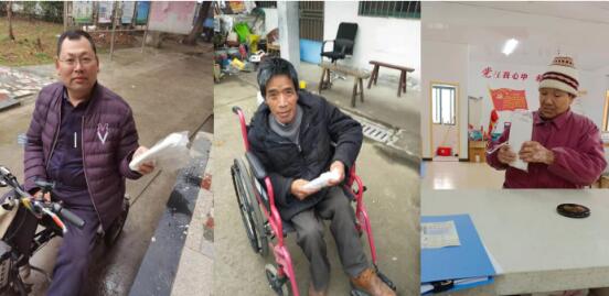 春節(jié)臨近,為了使轄區(qū)內(nèi)困難殘疾人能度過一個安樂祥和的春節(jié)。2月1日,南京市江寧區(qū)東山街道章村社區(qū)收到東山街道殘聯(lián)下發(fā)的2310只口罩后,立刻將口罩以10個/人的標(biāo)準(zhǔn)為轄區(qū)殘疾人送了過去,并向他們耐心講解佩戴口罩的正確方式,宣傳基本疫情防疫知識。