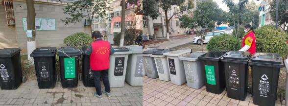 “王爺爺,您家里遙控器里的電池屬于有害垃圾,千萬不能隨意亂丟哦,廢舊電池會極大污染水和土壤,給環(huán)境造成很大的破壞,一定要記住把它們放到有害垃圾的垃圾桶”。垃圾分類過程中,志愿者穿著紅馬甲向村民宣傳介紹如何分類處理日常生活垃圾,倡導(dǎo)大家垃圾分類從自我做起,從現(xiàn)在做起。志愿者的“桶邊值守”,增強了居民自覺參與垃圾分類的意識,使“綠色、低碳、環(huán)保”理念深入人心。“廢棄酒瓶可以回收用來插花,廢棄牛奶盒可以回收用來種植多肉植物……”志愿者們分享的環(huán)保知識贏得了居民的一致好評。