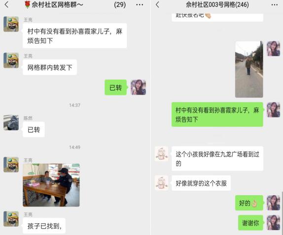 下午兩點(diǎn),江寧區(qū)東山街道佘村社區(qū)網(wǎng)格員陳然和佘德勝在社區(qū)警網(wǎng)融合工作室辦公,居民孫喜霞哭著向網(wǎng)格員求救“求求你們,快幫我一起找找孩子吧”!原來居民孫喜霞的5歲的兒子在社區(qū)景點(diǎn)玩耍,因家長疏忽大意走失,請(qǐng)求網(wǎng)格員協(xié)助。網(wǎng)格長王亮知曉此事,立即帶領(lǐng)網(wǎng)格員們前往事發(fā)地,在獲悉走失兒童的基本信息、體貌特征后,網(wǎng)格員立即聯(lián)系社區(qū)“智網(wǎng)工程”指揮調(diào)度工作站、佘村社區(qū)警網(wǎng)融合工作站請(qǐng)求協(xié)助,同時(shí)將走失兒童的相片和視頻發(fā)送至轄區(qū)各個(gè)微信群,呼吁群眾協(xié)助尋找。