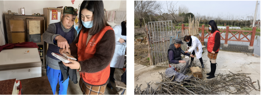 當(dāng)天,志愿者們挨家挨戶上門拜訪社區(qū)中的特困供養(yǎng)老人,為他們送去飽含關(guān)懷的慰問和一些治療基礎(chǔ)病癥的藥物。志愿者認真地為每一位特困供養(yǎng)老人測量血壓,進行基礎(chǔ)的健康檢查,并根據(jù)測量結(jié)果,為他們提出科學(xué)的生活指導(dǎo)和診療建議,將老人的健康情況一一記錄在冊。為了讓老人們擁有更加舒適整潔的居住環(huán)境,志愿者們?yōu)槔先藥兔φ砹思覄?wù),掃地、抹灰、擦窗,不怕臟、不怕累。在志愿者的清理打掃下,老人的家煥然一新。針對一些行動不便的老人,志愿者們更是自發(fā)地為他們砍柴,幫助減少他們勞動上的困難,熱心體貼的服務(wù)得到了老人們的連聲感謝。