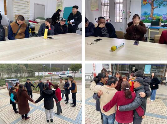 活動在腦力熱身”看表情猜詞語“游戲中開始,志愿者老師寫下幾個表情的詞語,讓看到詞語的人通過表情表現(xiàn)出來,讓其他人來猜。為了充分表現(xiàn)詞語的意思,每一位殘友都努力夸張的表現(xiàn)著自己的表情,逗得大家哈哈大笑,樂不思蜀。接著,大家來到了戶外開展在“縮小包圍圈”游戲,殘友們很快圍成一個圈,在向內(nèi)跨第一步時,小組成員之間彼此互相照應(yīng),大體的圓圈依舊成型。在跨第二大步的時候有些組員忍不住笑出了聲,原本大大的圓圈已經(jīng)變得“畸形”,小組成員之間的距離也越來越近。最后一步跨完,已經(jīng)沒有充足的地方可供所有人立足了,小組成員們都緊緊的依靠在了一起。在分享感悟時,有組員闡述到:“一直圍成一個圈需要大家的共同努力,每個人都是這個圈里不可分割的一部分。”有的組員說:“當(dāng)圓圈縮小后,我必須改變自己的站位方式,不能再像之前那樣隨意,否則就不容易維持好圈子。”還有的組員說:“包圍圈雖然縮小了,但是大家都擠在一起,互相依靠,其實也很快樂。”
