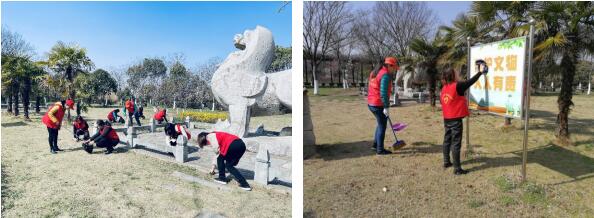 在新合村蕭恢、蕭憺?zāi)故虖V場,黨員志愿者在社區(qū)工作人員的安排下,對社區(qū)的文物廣場進行衛(wèi)生清潔。黨員志愿者以身作則,帶領(lǐng)參加衛(wèi)生清潔行動的城市治理志愿者、殘疾人志愿者們揮動手中的掃帚,清理衛(wèi)生死角、枯葉雜草、生活垃圾。大家充分發(fā)揚不怕臟、不怕苦、不怕累的精神,分工合作,干勁十足,有的用掃帚清掃地面,有的忙著把從綠化帶中撿出來的廢紙、塑料袋等掃進垃圾簍,大家都熱情高漲,以勞動為榮,樂在其中??吹浇韼街驹刚邆儌€個俯身掃地、清潔地面,不少社區(qū)居民豎起了大拇指,給與贊揚。