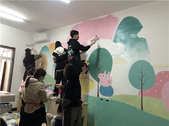 3月6日,由南京曉莊學院團委策劃的主題為“行知圓夢·用心用手繪就一片藍天”殘疾人居室手繪公益活動,在君子殘疾人之家正式開展。本次活動,經(jīng)過為期2個月的籌備,邀請?zhí)厥鈨和逃龑<摇⑿睦韺W專家、藝術(shù)設(shè)計專家親臨指導,由南京曉莊學院美術(shù)系百名志愿者執(zhí)筆完成,設(shè)計創(chuàng)作了一系列不同主題的手繪作品,并成功為君子殘疾人之家殘疾學員10間臥室進行美化改造。在這充滿溫情的“雷鋒月”,志愿者用實際行動來傳承和弘揚雷鋒奉獻友愛、互助進步的志愿精神,為殘疾孩子圓夢,為君子殘疾人之家的文化建設(shè)添上濃重一筆。