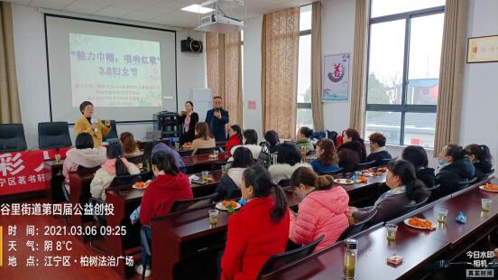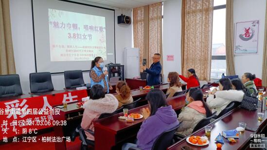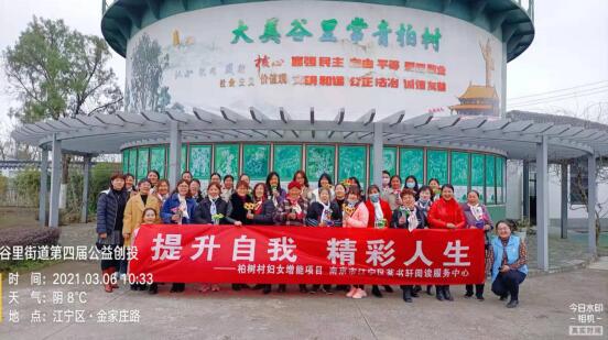 為紀(jì)念第111個“三八”國際婦女節(jié),營造節(jié)日氛圍,體現(xiàn)社區(qū)對女性居民的尊重,培養(yǎng)婦女的自我展示能力,結(jié)合今年建黨100周年,、柏樹村新時代文明實踐站、谷里街道柏樹村婦聯(lián)南京市江寧區(qū)茗書軒閱讀服務(wù)中心,于2021年3月6日上午開展了“魅力巾幗 唱響紅歌”3.8婦女齊歡樂活動。