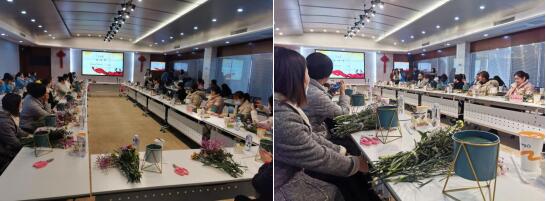 隨后,社區(qū)聯(lián)合南京光大環(huán)保集團(tuán),社企聯(lián)合舉辦插花活動(dòng)。參加人員是社區(qū)黨員和巾幗志愿者?;顒?dòng)現(xiàn)場(chǎng),插花老師從選花、裁剪、顏色搭配、造型等多方面講解插花技巧。隨后在老師的指導(dǎo)下,大家將原本普通的各種花材,修剪、整枝,再根據(jù)不同的色彩、形狀做精心搭配。很快,一籃籃精美的插花作品呈現(xiàn)出來。居民韋阿姨笑著說:“今年的三八節(jié)學(xué)到了插花技能,還能帶著賞心悅目的鮮花作品回家,真是太開心了!希望社區(qū)以后能多安排這樣的活動(dòng)。”活動(dòng)現(xiàn)場(chǎng)熱鬧非凡,到處彌漫著鮮花的芬芳。