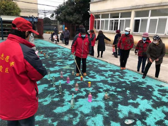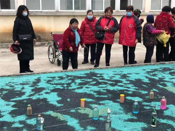 套圈亦是銀礦地質(zhì)社區(qū)三八婦女節(jié)的傳統(tǒng)活動之一,項目簡單又富有趣味性,每每受到居民的熱烈歡迎。活動開始,居民們站在離瓶子2米3的位置,每人十個圈,以套中瓶子計數(shù)。只聽全科社工志愿者一聲令下,一個個套圈從婦女居民們的手中扔出,在空中旋轉(zhuǎn)飛舞,穩(wěn)穩(wěn)地落到瓶子上方,不時傳來“中了!又中了!”的歡聲笑語。