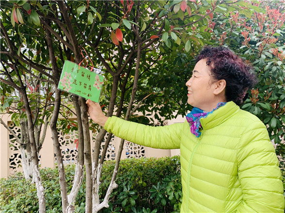 通過“益心·和美”掌云+積分制發(fā)動(dòng),蛇盤社區(qū)黨總支招募15名志愿者參與愛綠護(hù)綠行動(dòng)。大家有的在卡紙上畫上樹木、小鳥等圖案,有的貼上美麗的花瓣,寫下環(huán)保標(biāo)語,生動(dòng)有趣、各有特色的“愛綠護(hù)綠”環(huán)保標(biāo)牌就完成了。