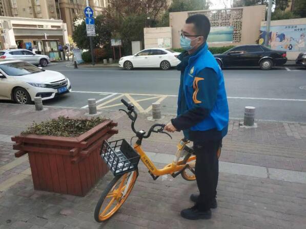 這是南京市棲霞區(qū)馬群街道蛇盤社區(qū)城市治理志愿者整治非機動車行動中的場景。