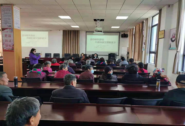 講座中,宣講員首先從“當前城鄉(xiāng)陳規(guī)陋習的主要表現(xiàn)”“為什么要推動城鄉(xiāng)移風易俗”講述了紅白喜事大操大辦等不良陋習的由來,并結(jié)合婚事新辦、喪事簡辦的先進典型宣講如何有力推進移風易俗工作。隨后從新時代新思想的角度出發(fā),提倡破舊立新、婚事新辦、摒棄陋習、喪事簡辦、崇尚節(jié)儉、喜事簡辦、弘揚孝道,厚養(yǎng)薄葬。倡導大家破除封建迷信、改變大操大辦不良社會習俗,建立科學文明的生活方式,樹立健康和諧的良好風尚。最后她強調(diào),黨員干部要帶頭倡導移風易俗樹新風,要以政風黨風帶動社風民風,以社區(qū)民風涵養(yǎng)政風黨風?,F(xiàn)場參會村民紛紛表示推動移風易俗,樹立文明新風是每一位公民責無旁貸的義務,將自覺踐行移風易俗,爭做文明新風的倡導者、傳播者和實踐者。