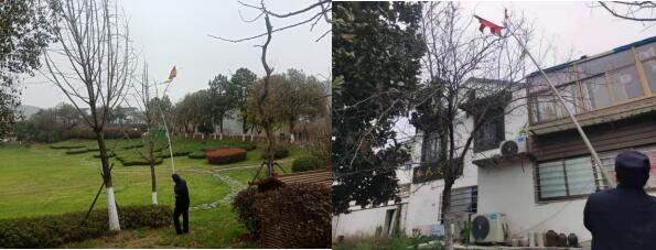近日,南京市江寧區(qū)江寧街道城管辦黃龍峴市容中隊(duì)組織開展了景區(qū)斷線風(fēng)箏專項(xiàng)清理行動(dòng)。在對本轄區(qū)旅游大道沿線巡查過程中,城管隊(duì)員發(fā)現(xiàn)景區(qū)大草坪附近樹枝上多處“掛了彩”,式樣不一的風(fēng)箏“落戶”枝丫,大煞風(fēng)景,有礙市容觀瞻,破壞春日景象。這些風(fēng)箏大多纏繞在較高的樹枝頂端,若不及時(shí)清理可能帶來安全隱患。為此,城管隊(duì)員們想盡辦法,根據(jù)目測高度找來長度合適的竹竿和梯子,9名隊(duì)員輪番上陣、相互配合,用巧勁或挑或拍,經(jīng)過一個(gè)多小時(shí)的努力,十幾只高掛枝頭的斷線風(fēng)箏終于被清理下來,及時(shí)消除了安全隱患,恢復(fù)了景區(qū)原本靚麗的風(fēng)貌。