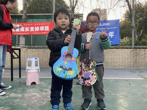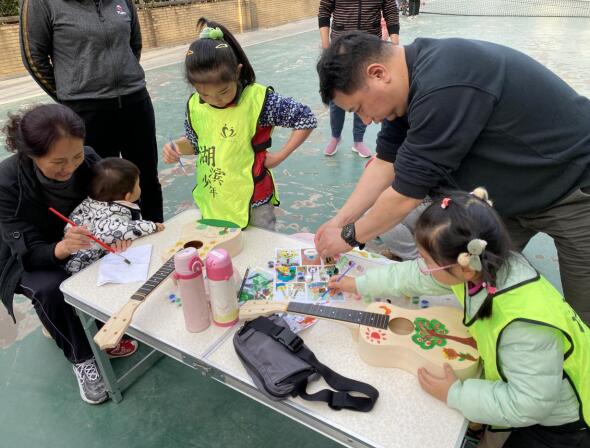 本次手繪尤克里里活動(dòng),受到了廣大居民的認(rèn)可和喜愛(ài)。孩子們也在活動(dòng)中學(xué)到了如何勇敢的表達(dá)自己的需求,如何跟其他小朋友交往,鍛煉了動(dòng)手能力和自信心,培養(yǎng)了愛(ài)心,增進(jìn)了親子關(guān)系。尤其是組裝琴弦的階段,家長(zhǎng)之間互相幫助,給小朋友們樹(shù)立了良好的榜樣。