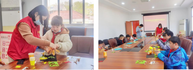 “先把紙杯對折,在上面畫豎線。再沿著畫的線剪開,把紙杯展開我們就得到了一朵紙做的菊花。”社區(qū)志愿者正在教孩子們怎樣制作手工菊花。民主村留守兒童數(shù)量不在少數(shù),為了給孩子們帶來關(guān)愛和陪伴,清明節(jié)社區(qū)工作人員將孩子們組織起來參加活動,豐富了孩子們的假期生活。