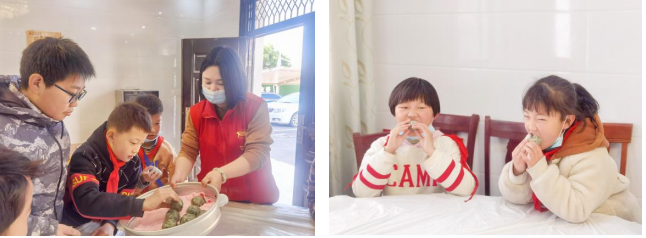 在志愿者的帶領(lǐng)下,孩子們洗干凈小手后擼起袖子,學著和面。志愿者一邊展示一邊指導,孩子們樂在其中,揉出來的青團圓滾滾的。將揉好的青團放到蒸籠里蒸熟后,每個孩子都嘗到了自己做的青團。這一次的體驗對孩子們來說,既是一次新奇的活動,又是傳統(tǒng)文化的傳承。