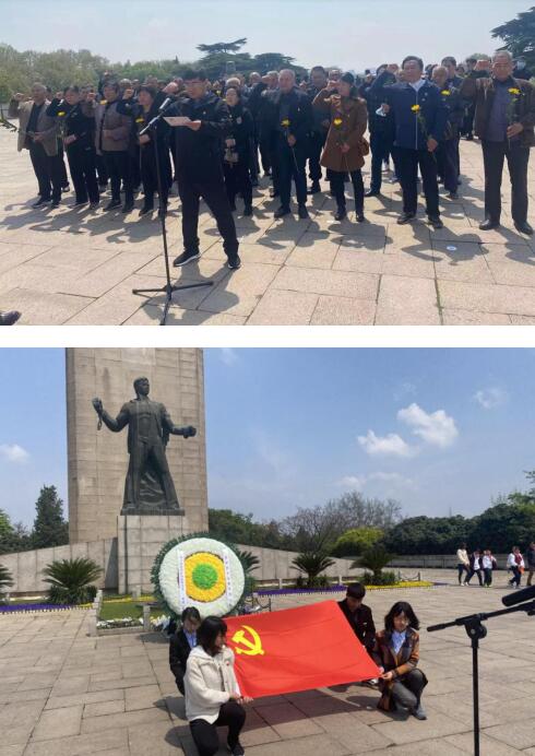 在莊嚴(yán)肅穆的雨花臺(tái)烈士就義群雕前,講解員向大家講述了烈士就義群雕的由來和革命歷史。在紀(jì)念碑前,全體黨員和工作人員整齊肅立,低頭默哀,以此緬懷革命先烈的不朽功績(jī),寄托對(duì)革命烈士的深切哀思。在黨旗下,黨員們重溫入黨誓詞,隨后緩步繞行紀(jì)念碑一周,向革命烈士致以崇高敬意。