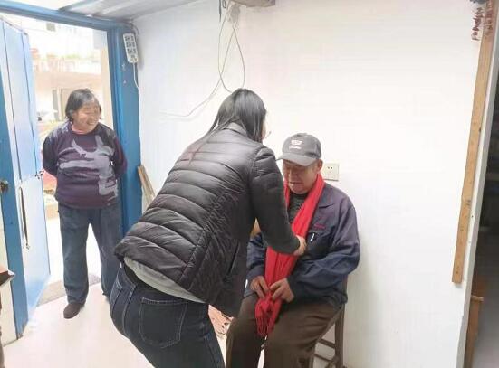 屋內(nèi)暖意融融,熱鬧場(chǎng)面里洋溢著幸福的味道。工作人員和志愿者們先依照慣例幫助王榮國(guó)打掃衛(wèi)生,掃地、拖地、擦桌子,大家忙得不亦樂(lè)乎。一會(huì)兒功夫,老人家中被志愿者們打掃得干干凈凈。“祝您生日快樂(lè),祝您健康長(zhǎng)壽……”打掃衛(wèi)生后,伴隨著溫馨的生日歌,志愿者們?yōu)槔先藥霞t圍巾,奉上生日禮物的同時(shí)為老人用相機(jī)記錄下這美好的瞬間。