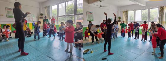 一首耳熟的韻律音樂《媽媽寶貝》讓小朋友們迅速融入到活動氛圍中,老師熱情地帶著孩子們參與親子熱身操。幼兒天生喜歡小動物,也很喜歡模仿各種不同的小動物,但是對小動物的局部特征并不是很了解。白云老師通過模仿小動物的特征,激發(fā)幼兒探究動物腳印的興趣,并鼓勵小朋友走到臺前模仿小動物,鍛煉了小朋友的社會交際能力。此外,白云老師還引導幼兒動手操作,通過腳印配對活動加深幼兒對動物腳印特征的認識,并與生活中的事物進行一一對應,用簡短而又形象的語言總結了小動物腳印分別像什么,在發(fā)展幼兒的觀察力同時也讓幼兒了解了對比事物差異性的方法。