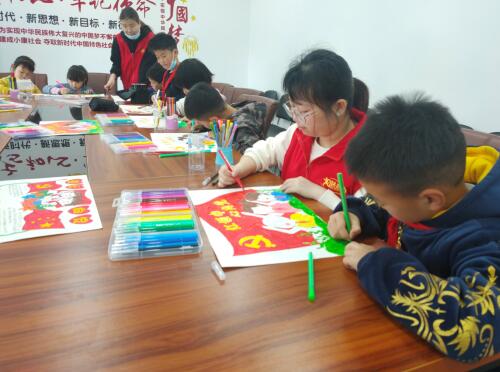 發(fā)揚(yáng)紅色傳統(tǒng),傳承紅色基因。“民主村志愿者利用周末,為轄區(qū)留守兒童開展“童心同行繪黨旗,跟黨走”創(chuàng)意繪畫活動(dòng),讓孩子們了解黨史、彩繪黨旗,鼓勵(lì)社區(qū)留守兒童通過(guò)學(xué)黨旗、繪黨旗、感黨恩、跟黨走進(jìn)一步學(xué)習(xí)黨史。