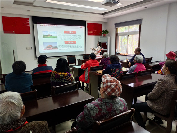 課上,理論宣講志愿者圍繞“從百年歷史看黨的初心和使命”主題,圍繞建立中國共產(chǎn)黨、成立中華人民共和國、推進(jìn)改革開放和中國特色社會主義事業(yè)三個(gè)部分進(jìn)行了全面系統(tǒng)、深入淺出的講解,帶大家感悟初心使命,汲取精神力量。并通過觀看獻(xiàn)禮建黨百年微視頻,更直觀形象地讓老黨員們從百年黨史中理清歷史脈絡(luò),把握重大事件,學(xué)習(xí)革命精神,激勵(lì)擔(dān)當(dāng)作為。