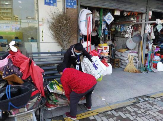 整治行動(dòng)中,社區(qū)工作人員、城市治理志愿者向商鋪店主耐心講解“門前三包”責(zé)任制的有關(guān)內(nèi)容,積極宣傳城市管理規(guī)定;同時(shí)以落實(shí)“門前三包”為重點(diǎn),以步巡和車巡的方式相結(jié)合,不間斷對(duì)轄區(qū)沿街商鋪“門前三包”落實(shí)情況進(jìn)行巡查,做到發(fā)現(xiàn)一處,清理一處。在整治行動(dòng)中,金堯花園社區(qū)重點(diǎn)對(duì)轄區(qū)主次干道沿線商鋪所存在的出店經(jīng)營(yíng)、亂設(shè)置廣告、亂堆亂放等現(xiàn)象進(jìn)行整治,街道公眾委員劉石城配合社區(qū)工作人員、城市治理志愿者對(duì)店外經(jīng)營(yíng)、亂堆亂放、衛(wèi)生情況差等現(xiàn)象進(jìn)行治理,并現(xiàn)場(chǎng)督促商戶整改。