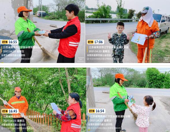 4月23日下午,南京市江寧區(qū)谷里街道張溪社區(qū)聯(lián)合江寧區(qū)美麗鄉(xiāng)村普法服務中心開展“關(guān)愛環(huán)衛(wèi)工人,共建美好家園”慰問活動,為環(huán)衛(wèi)工人送溫暖,同學們送上精心準備的繪畫作品以表敬意,志愿者們送上最真誠的問候并道一聲辛苦了,勝過千言萬語。