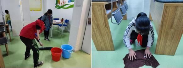 隨后,新時(shí)代文明實(shí)踐志愿者組織青少年們共同清掃教室,青少年們分工合作,有的拿著掃把用力掃地,有的拿著灑水桶給地面澆水,有的則負(fù)責(zé)將教室內(nèi)的垃圾倒掉,雖然他們的小臉蛋因?yàn)楦苫罴t撲撲的,額頭上也綴著汗水,但是他們打掃的熱情絲毫沒(méi)有被減弱,在小朋友的共同努力下,教室被打掃得干干凈凈、一塵不染。