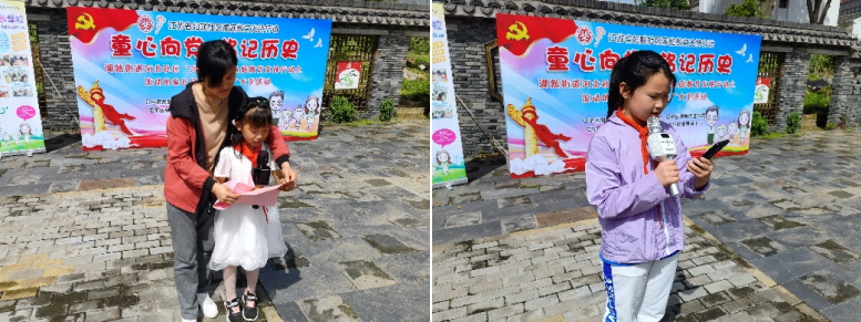 活動現(xiàn)場,孩子們和家長在工作人員的引導下,以孩子們喜歡的故事為出發(fā)點,三組家庭上前共讀紅色經(jīng)典故事。在場的家長和孩子們共同讀黨史、感黨恩,在閱讀中回顧黨的光輝歷程,感受共產(chǎn)黨人心中所傳遞的永不磨滅的光芒。接下來,在工作人員的鼓勵下,孩子們自由上前進行詩歌朗誦,從紅色經(jīng)典中汲取精神營養(yǎng),厚植家國情懷。