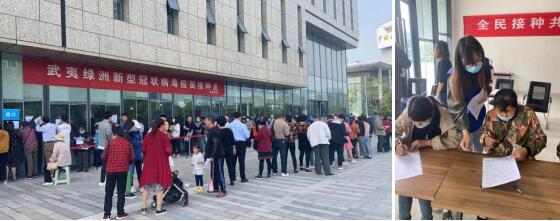 在武夷綠洲新型冠狀病毒疫苗接種點的門口,居民群眾現(xiàn)場排隊等候登記與接種。“您好,最近身體還好吧?”、“有沒有禁忌癥?”、“請您確認(rèn)簽字”……每一位被接種者的建檔注冊、健康咨詢、禁忌癥確認(rèn)、知情告知等,醫(yī)護(hù)人員都耐心地進(jìn)行詢問。在疫苗接種工作臺前,社區(qū)網(wǎng)格員和疫苗接種人員各司其職,詢問、取苗、接種、填卡,看似機械化的作業(yè),無不是責(zé)任與細(xì)致的環(huán)環(huán)相扣。在社區(qū)與疫苗接種人員的齊心協(xié)力下,6日接種劑次為637針,7日接種劑次達(dá)1000針,橋頭社區(qū)的疫苗接種工作取得了階段性的良好成效。