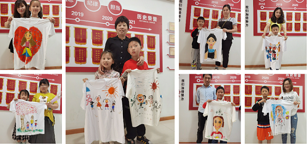 通過(guò)節(jié)日的祝福傳達(dá)對(duì)母親的感恩,是我們中華民族優(yōu)秀的傳統(tǒng)美德。社區(qū)工作人員和志愿者們?yōu)榍皝?lái)參加活動(dòng)的家庭準(zhǔn)備了純白色的T恤,以及能用于衣服上作畫的丙烯顏料、顏料刷、調(diào)色盤等工具?,F(xiàn)場(chǎng)進(jìn)行的如火如荼,大家的白T恤上逐漸多了星星點(diǎn)點(diǎn)的色彩。親子溝通、親子默契、親子情感在繪畫過(guò)程中逐漸加強(qiáng)、升溫,快樂(lè)和幸福也在蔓延。在家長(zhǎng)與孩子的通力合作下,一件件畫好的T恤“新鮮出爐”,衣服上的媽媽惟妙惟肖,孩子們都抓住了媽媽神態(tài)或者外貌上的特點(diǎn)。“畫得很像我,謝謝我的寶貝!”活動(dòng)現(xiàn)場(chǎng)的媽媽們綻開了笑顏。