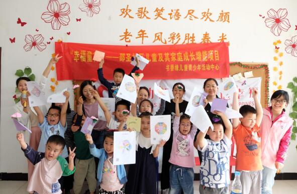 活動(dòng)中,親子家庭們互相進(jìn)行自我介紹,打破現(xiàn)場(chǎng)尷尬的氛圍。隨后,游戲互動(dòng)、有獎(jiǎng)問(wèn)答、手工制作、曼陀羅繪畫(huà)等環(huán)節(jié)將現(xiàn)場(chǎng)氛圍推向高潮,親子家庭們?cè)谥驹刚叩膸ьI(lǐng)下,積極參與各項(xiàng)環(huán)節(jié),現(xiàn)場(chǎng)一片歡聲笑語(yǔ)。手工制作環(huán)節(jié)結(jié)束后,親子家庭們還將自己親手制作的手工藝品送給母親,并向母親道一聲“節(jié)日快樂(lè)”?;顒?dòng)最后,親子家庭還拿著今天的成果一起合影留念,定格下這最為美麗的時(shí)光。