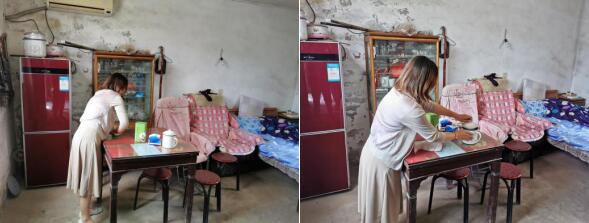 前不久,群眾反映屋檐有馬蜂窩,擔(dān)心馬蜂的聚集影響日常生活。網(wǎng)格員們接到居民的訴求后,立馬上門進(jìn)行清除,及時(shí)回應(yīng)問題、解決問題。隨后,網(wǎng)格員們又來到社區(qū)殘疾人邵培友家中,不巧的是他正在地里鋤地。網(wǎng)格員們隨即拿起鋤頭跟他一起干,避免他在炎熱的高溫下過度勞累,身體負(fù)荷超載。在社區(qū)內(nèi)負(fù)責(zé)民政工作的網(wǎng)格員走進(jìn)其中一戶殘疾村民家中,看到中午吃飯的碗筷還沒來得及收拾,擼起袖子就動(dòng)手洗碗擦桌子。“居民的事情就是我們的事情。殘疾人在生活上有不便之處,我希望能盡我所能去幫助他。”她一邊收拾一邊說道。