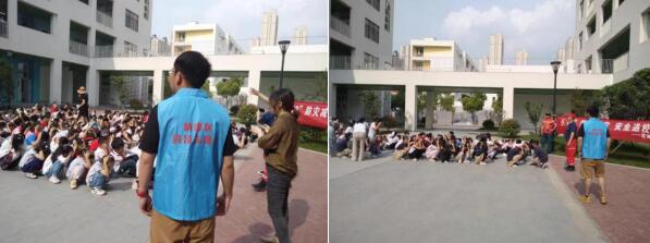 演練現(xiàn)場模擬教學(xué)樓起火,隨著火災(zāi)信號(hào)響起,疏散演練正式開始。發(fā)現(xiàn)火情后,學(xué)校第一時(shí)間撥打火警“119”報(bào)警,同時(shí)立即啟動(dòng)應(yīng)急疏散預(yù)案,組織師生沿著預(yù)定路線,彎腰、捂鼻,快速撤離到操場上指定的安全地帶。整個(gè)演練過程嚴(yán)肅認(rèn)真,有序高效,達(dá)到了預(yù)期效果。“發(fā)生火災(zāi)時(shí),有毒煙氣是最大的殺手。你們背的這個(gè)叫做正壓式空氣呼吸器,大家可以把它理解為氧氣瓶……”活動(dòng)現(xiàn)場,電瓷社區(qū)工作人員還為師生們科普了消防器材的使用方法和操作步驟,通過直觀的實(shí)踐感知,增強(qiáng)了學(xué)生火災(zāi)預(yù)防和火災(zāi)發(fā)生時(shí)的自救常識(shí)和自我營救能力的培養(yǎng)。
